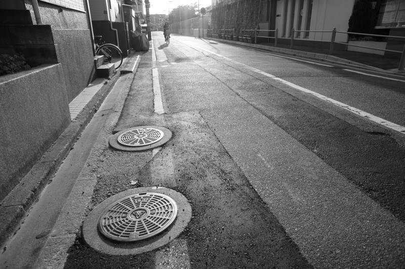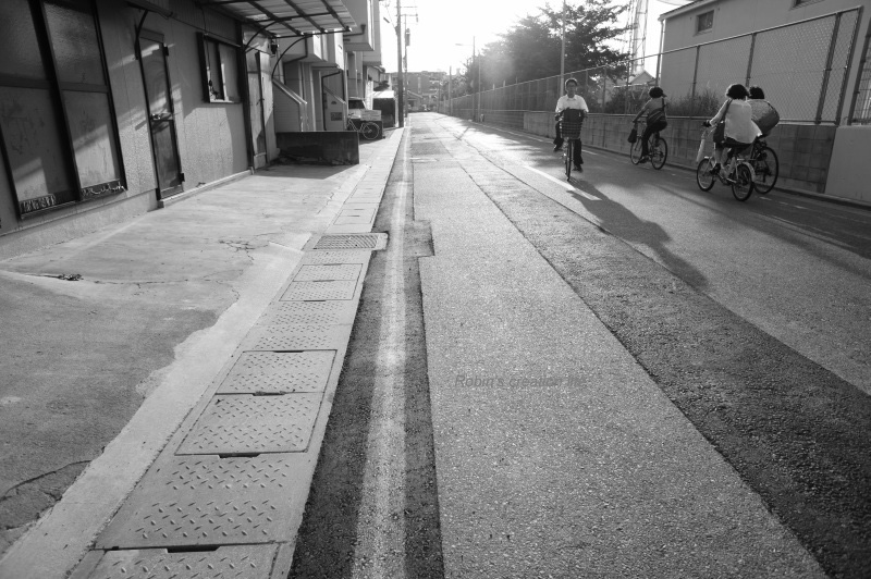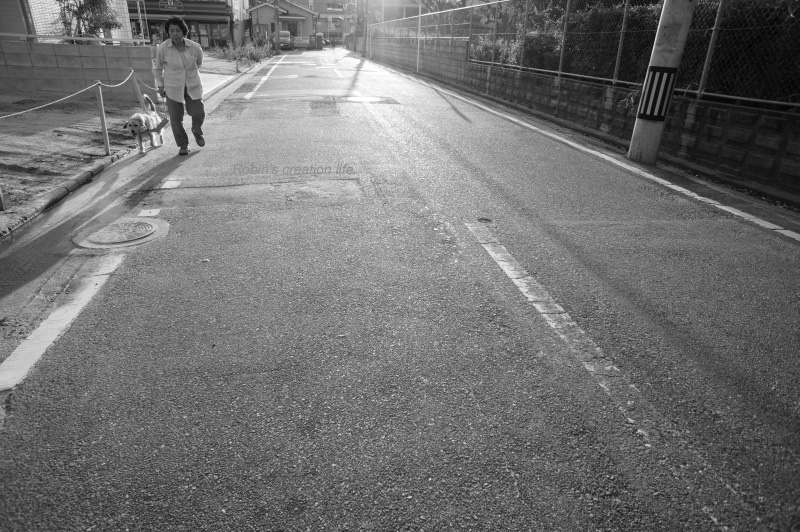 ちょっと、まぶしそうに、急ぎ足で歩く。