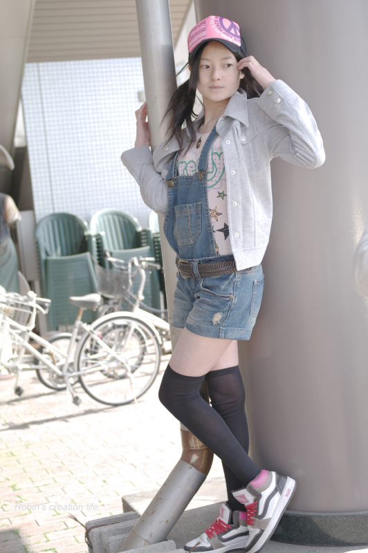 サ、サロペに、スニーカー、最強です。