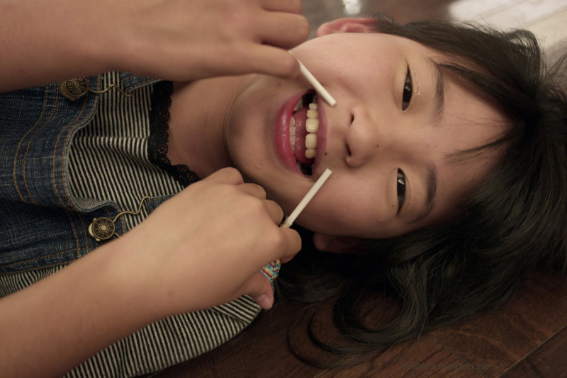 最後は、キャンディーを、はなに、いれようとする、ゆりちゃん。