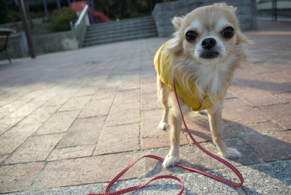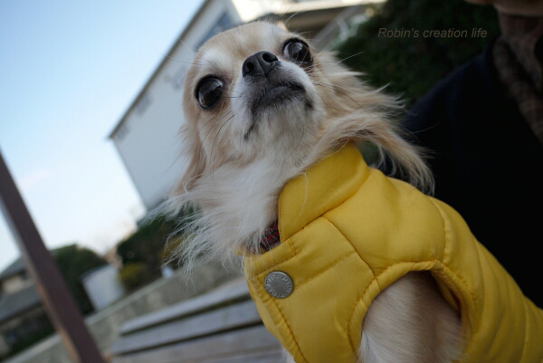 お外では、黄色のパーカー、必需品。(フリーアングルで撮ってみた。)